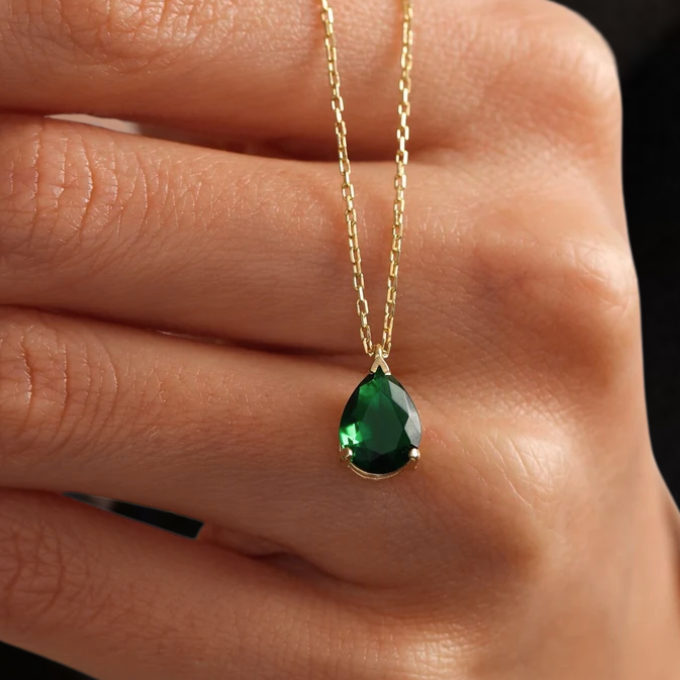 14K Emerald Green May Birthstone Pendant Solid Gold Emerald Necklace