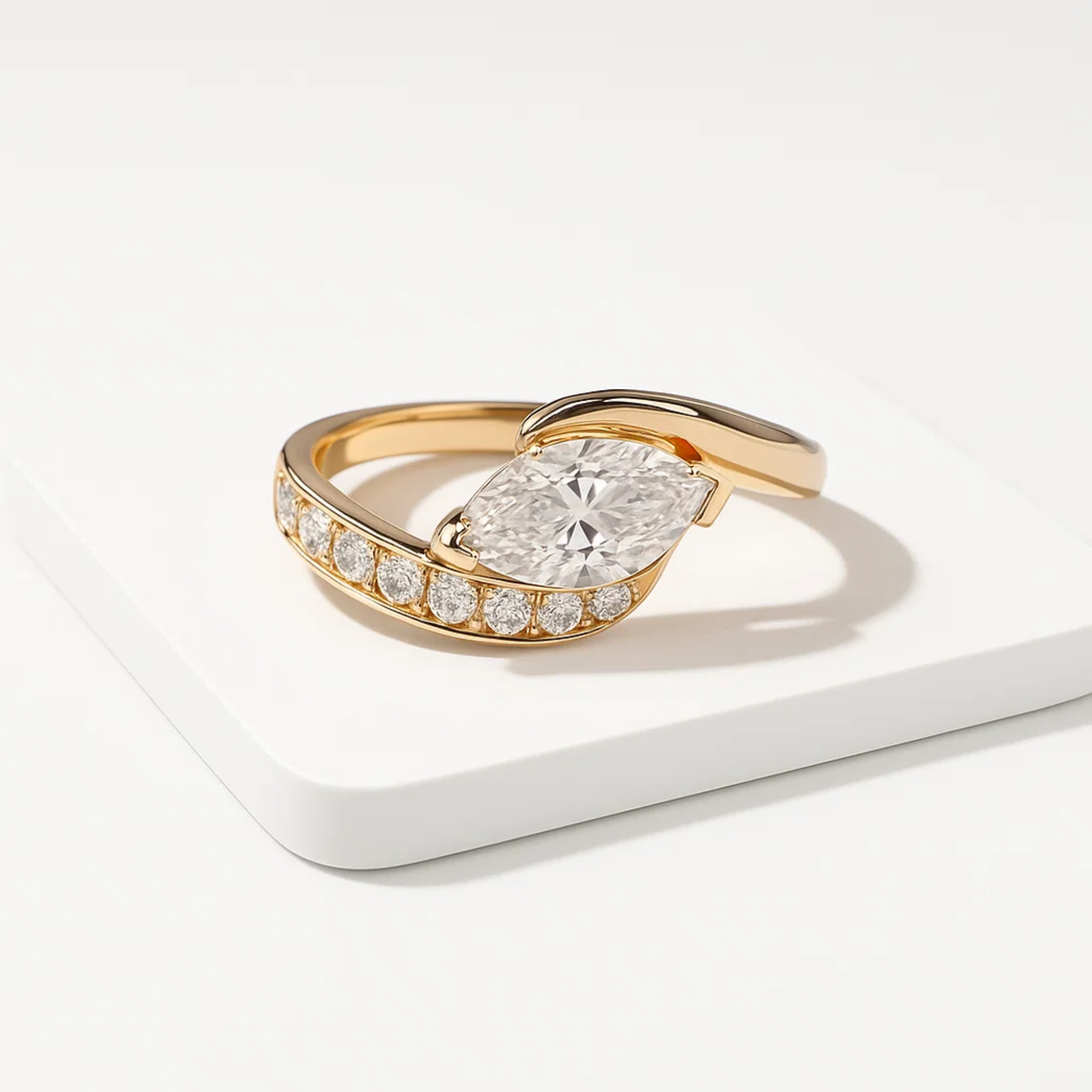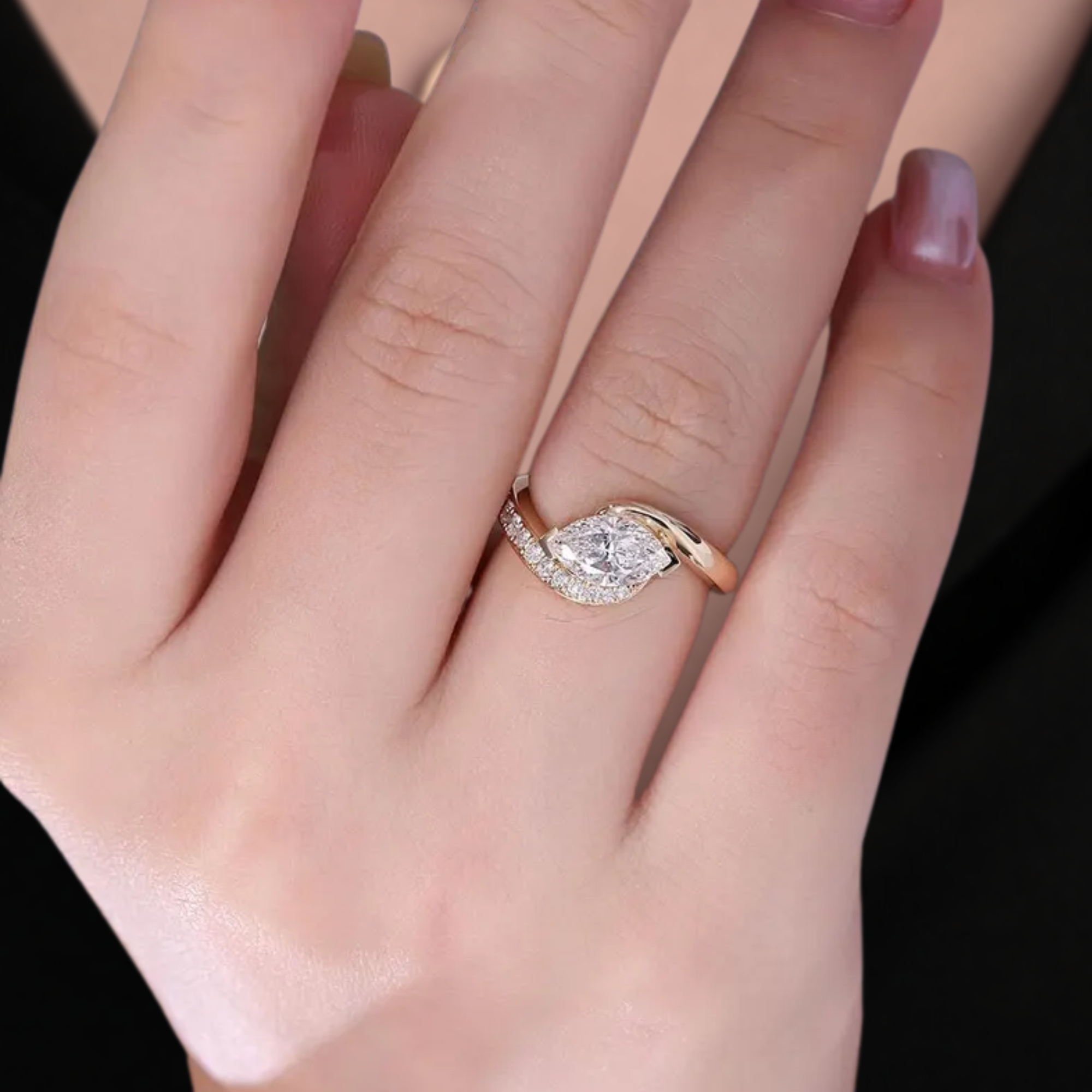 14K East West Marquise Cut Lab Grown Diamond Engagement Ring