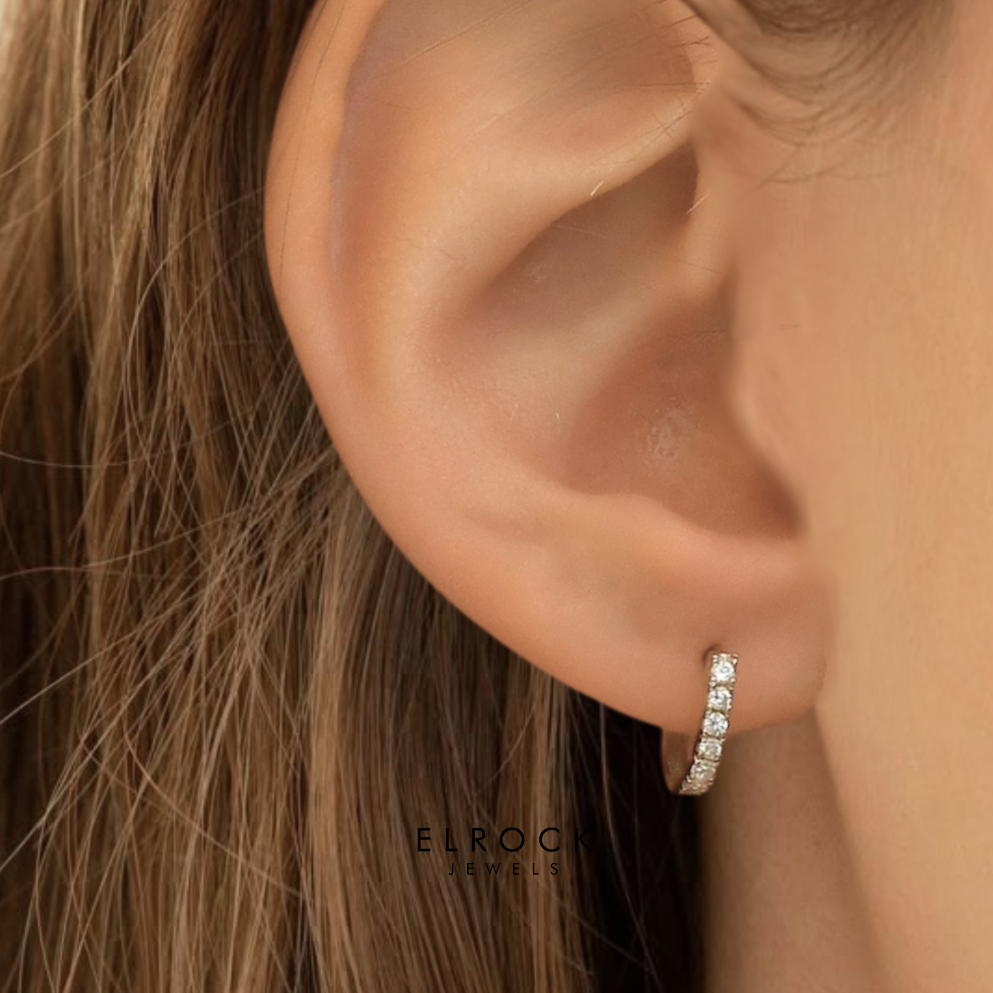 14K Solid Gold Diamond Huggie Diamond Hoop Earrings