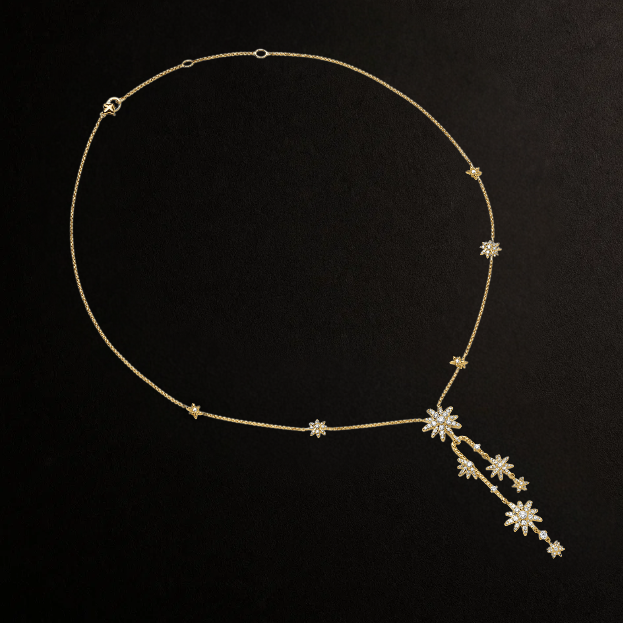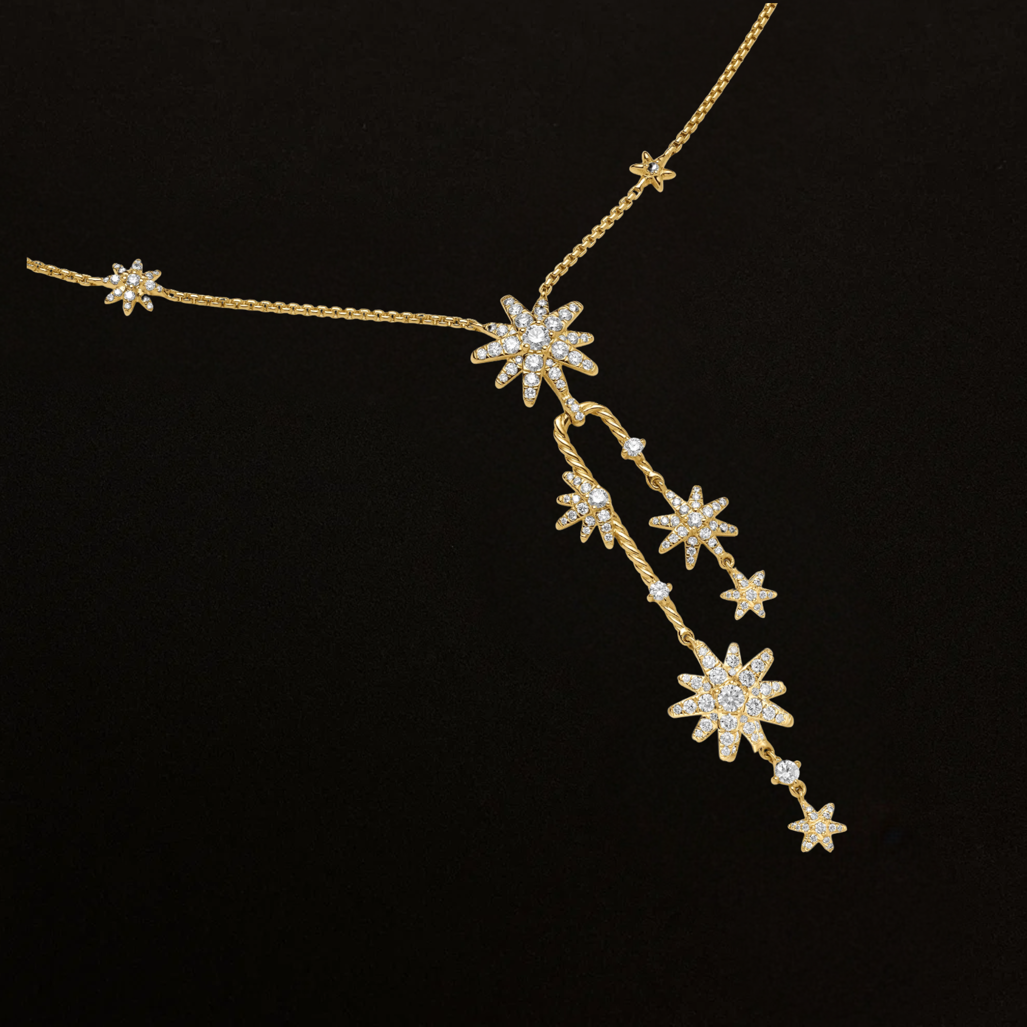 14K Starburst Cluster Necklace, Dainty Star Drop Necklace for Women