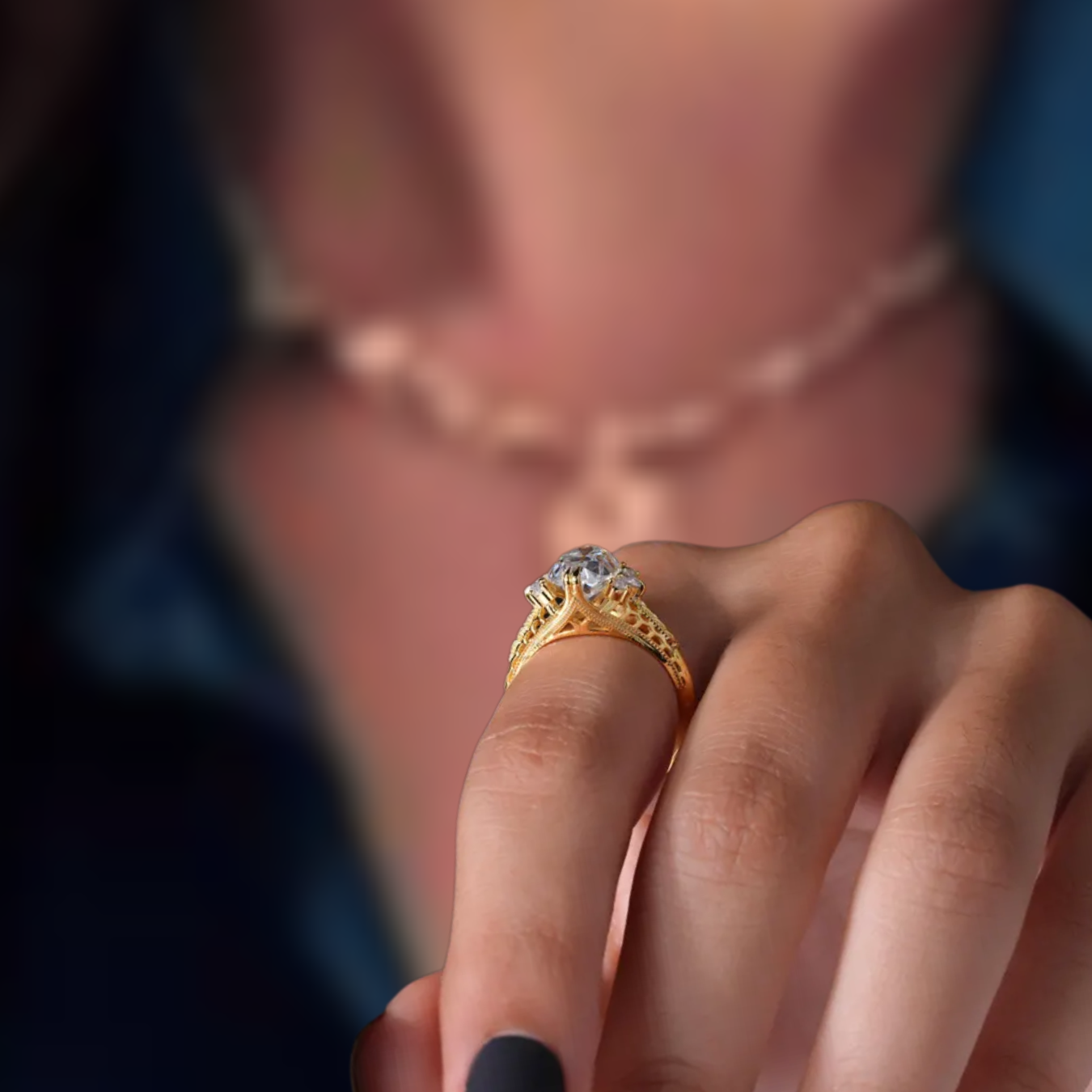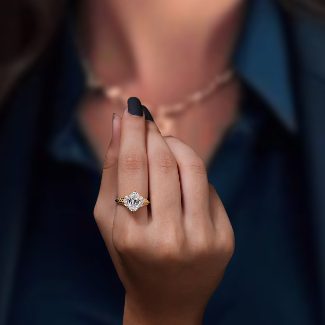14K Yellow Gold 2.70 Ct Antique Cut Oval Lab Grown Engagement Ring