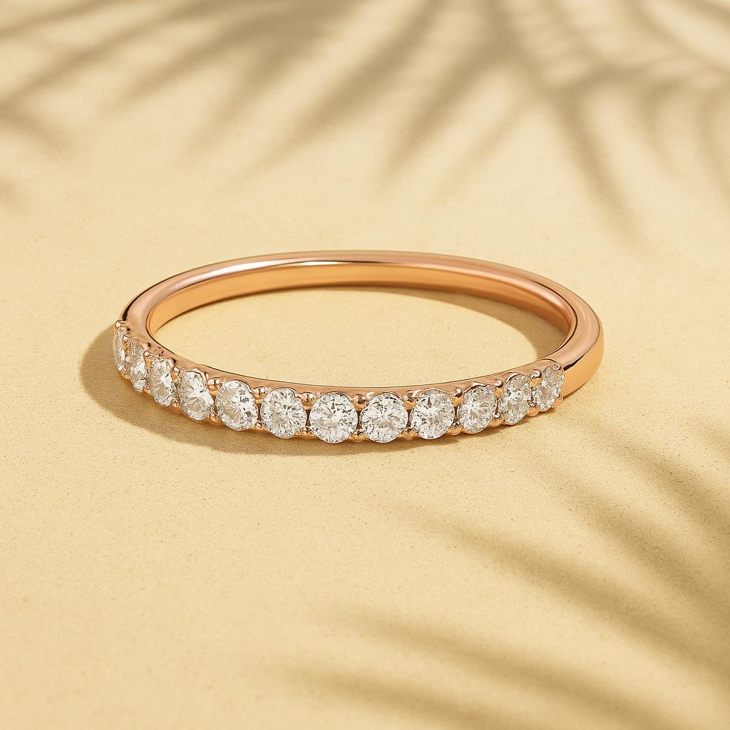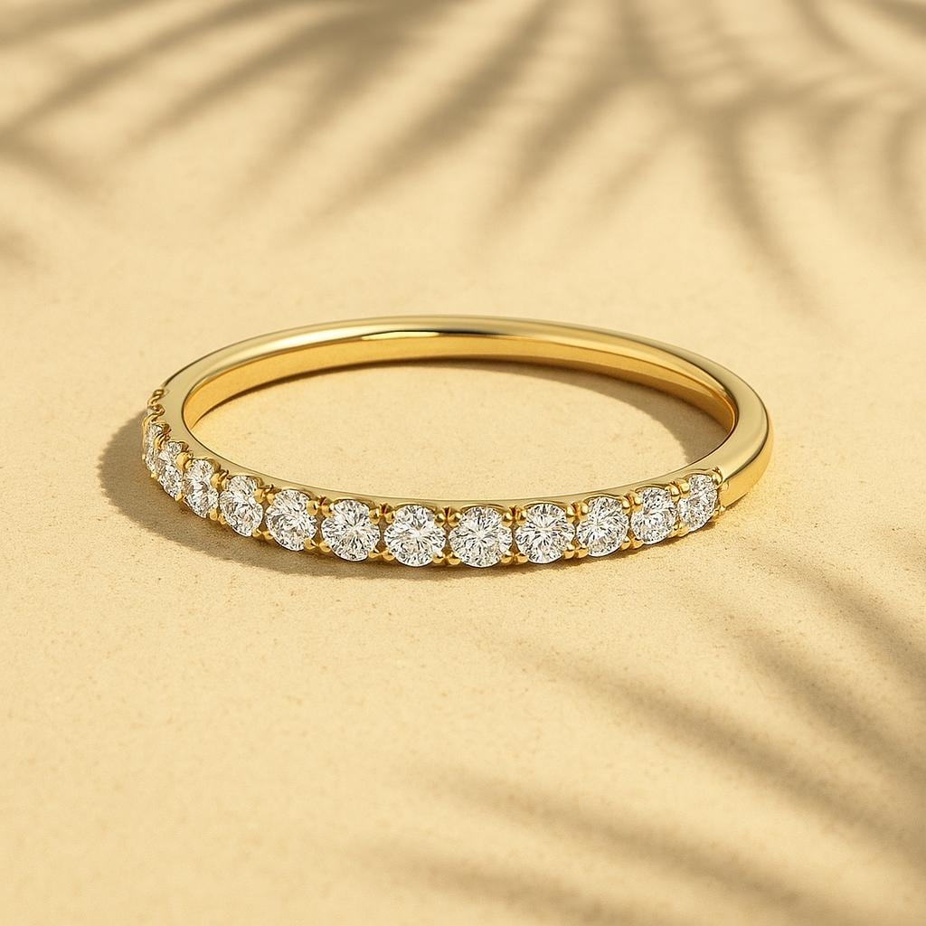 14K Gold Lab Created Pave Half Eternity Wedding Ring 2mm Diamond Band for Her