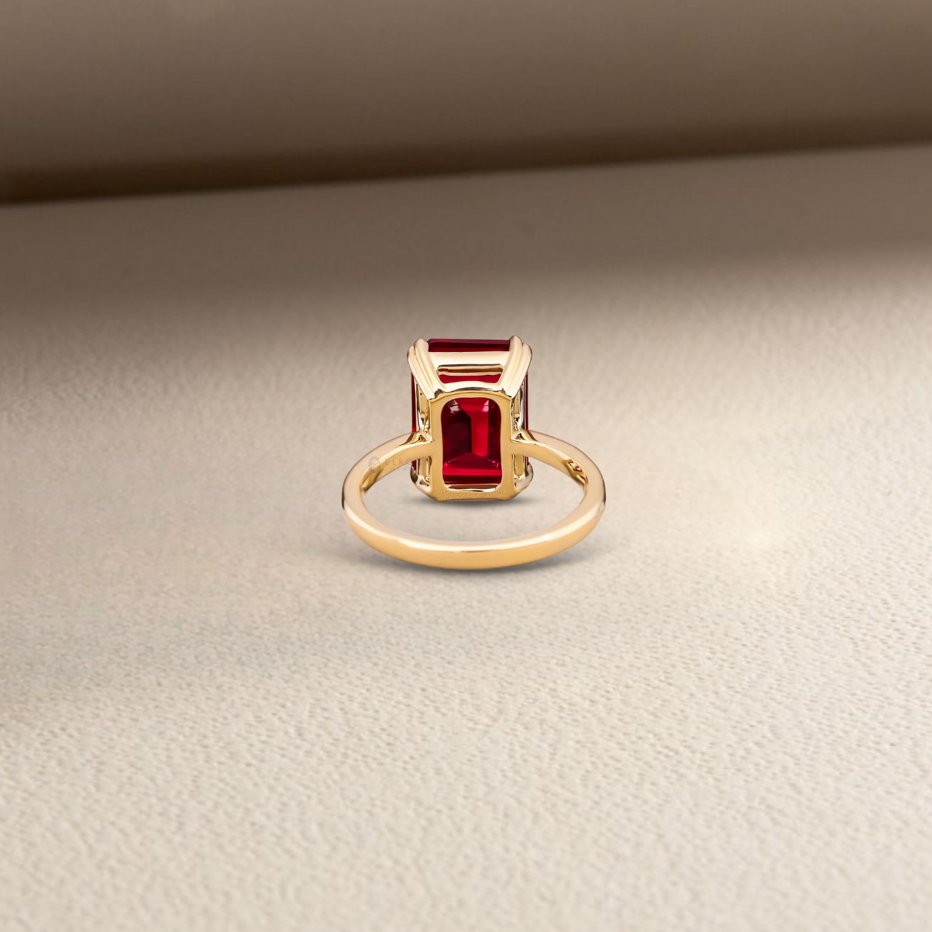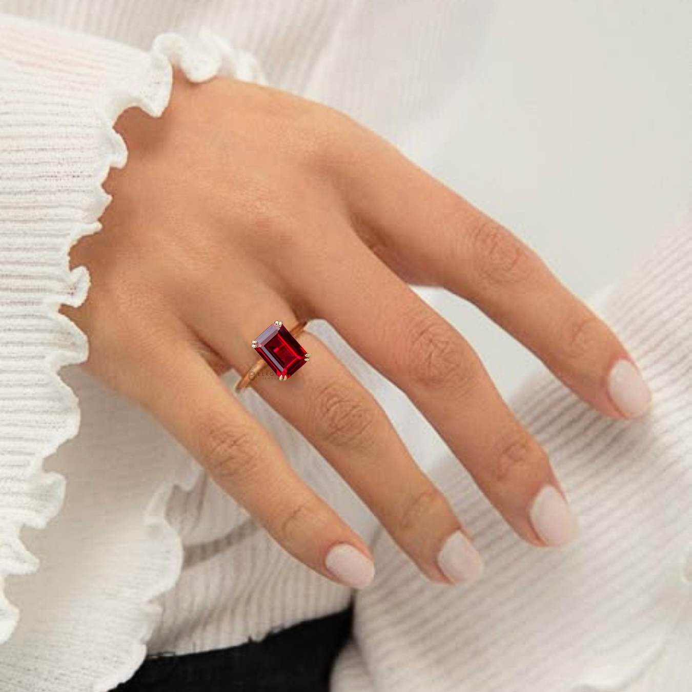 14K ,3.50ct Emerald Cut Lab Created Ruby Solitaire Minimalist Ring