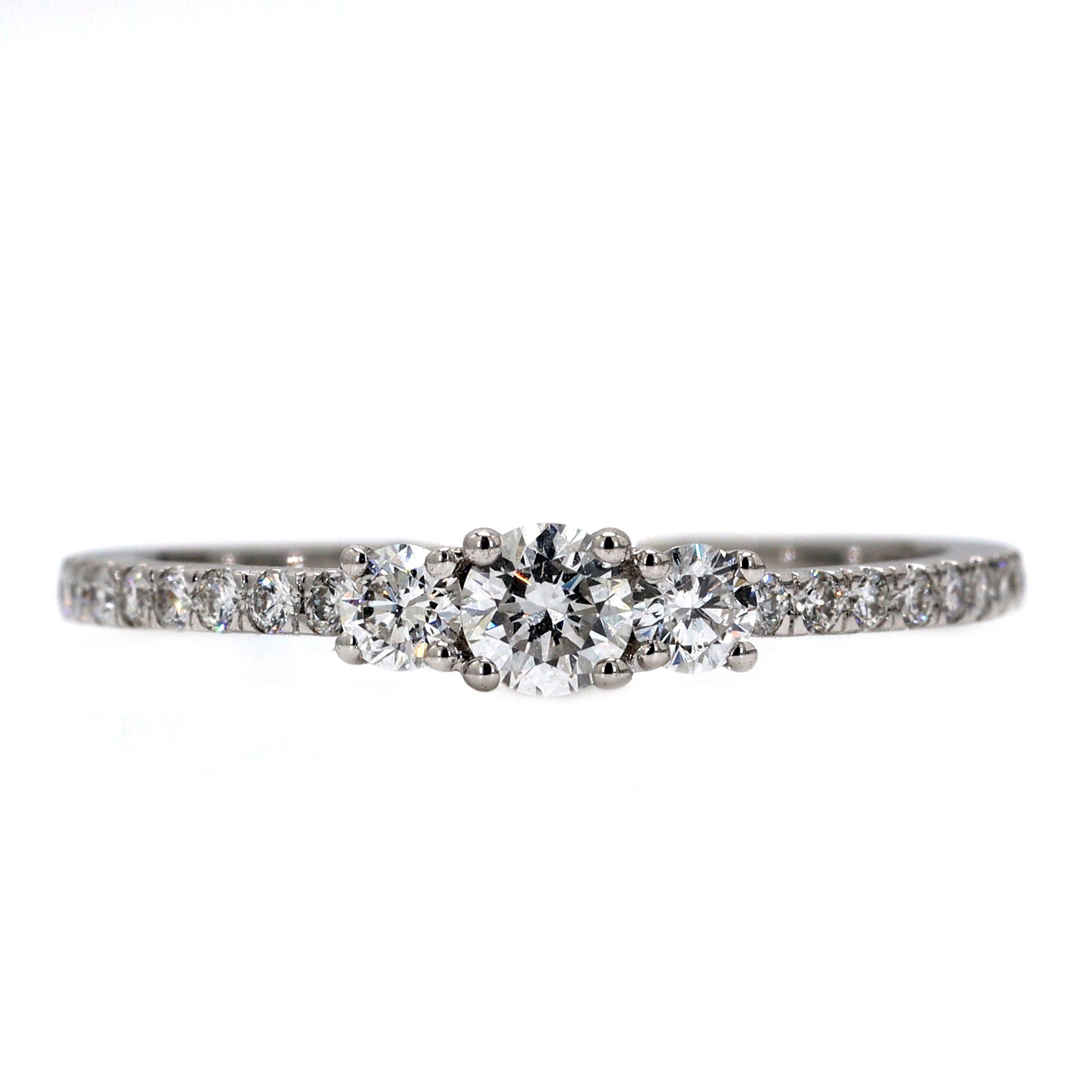 14K Gold 3 Stone Round Cut Pave Set Engagement Ring