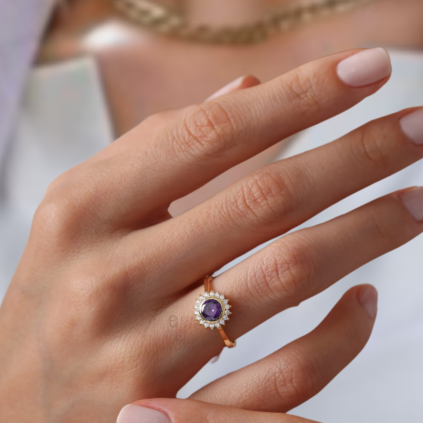 14K Solid Gold Purple Amethyst and Diamond Engagement Ring