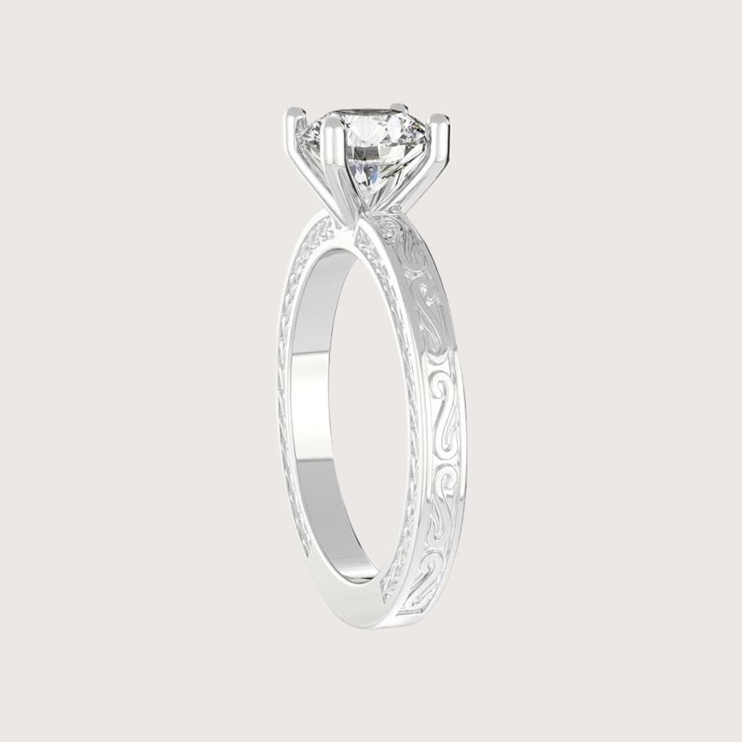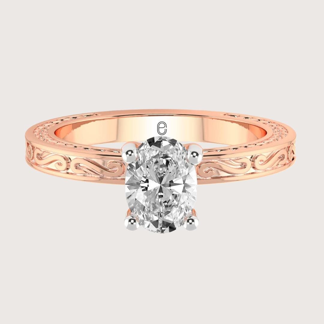 14K Art Deco Filigree Oval Lab Grown Solitaire Ring