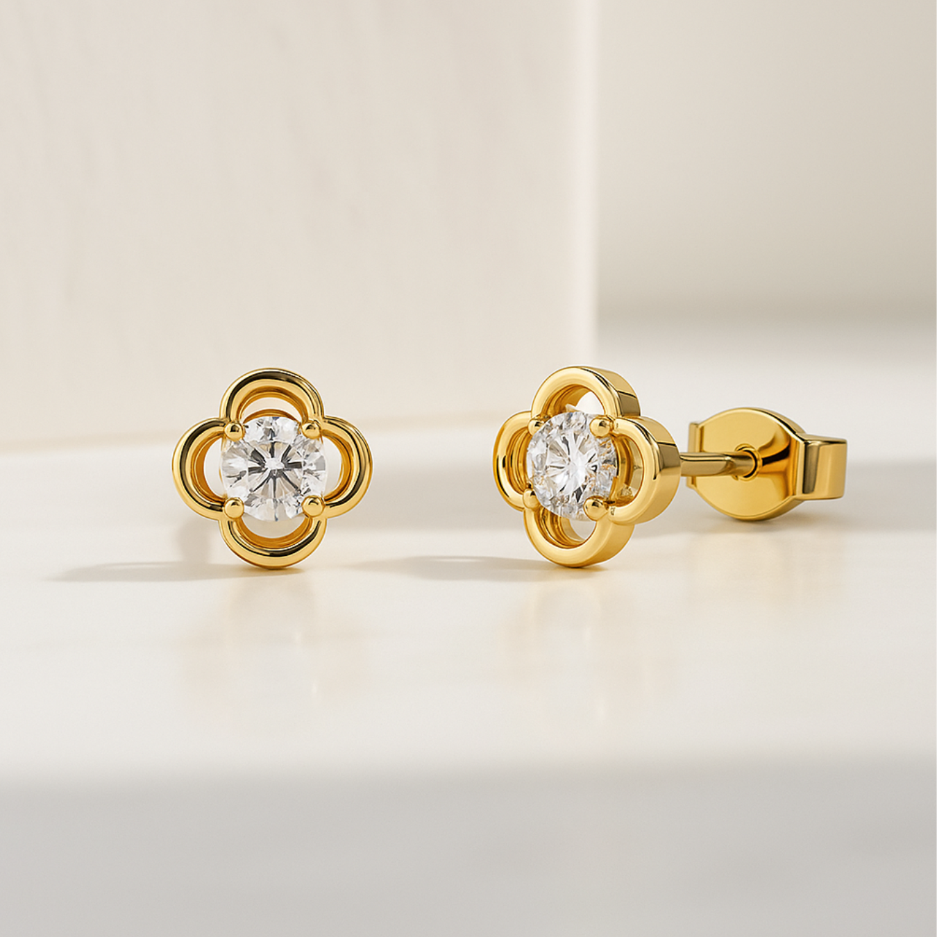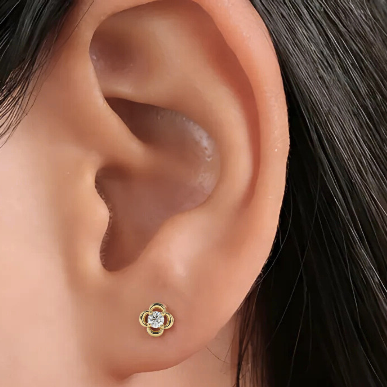 14k Gold Lab Diamond Flower Clover Classic Dainty Stud Earrings for Women
