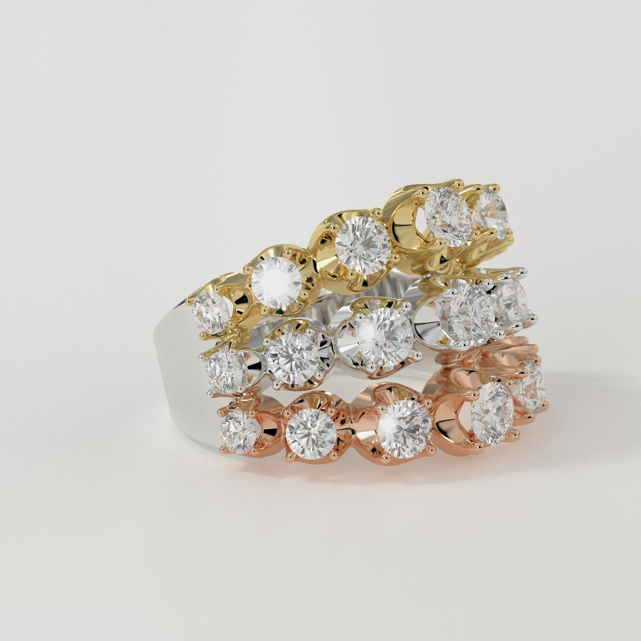 Customizable Design: Tailor these stackable bands with custom stone and metal variations.