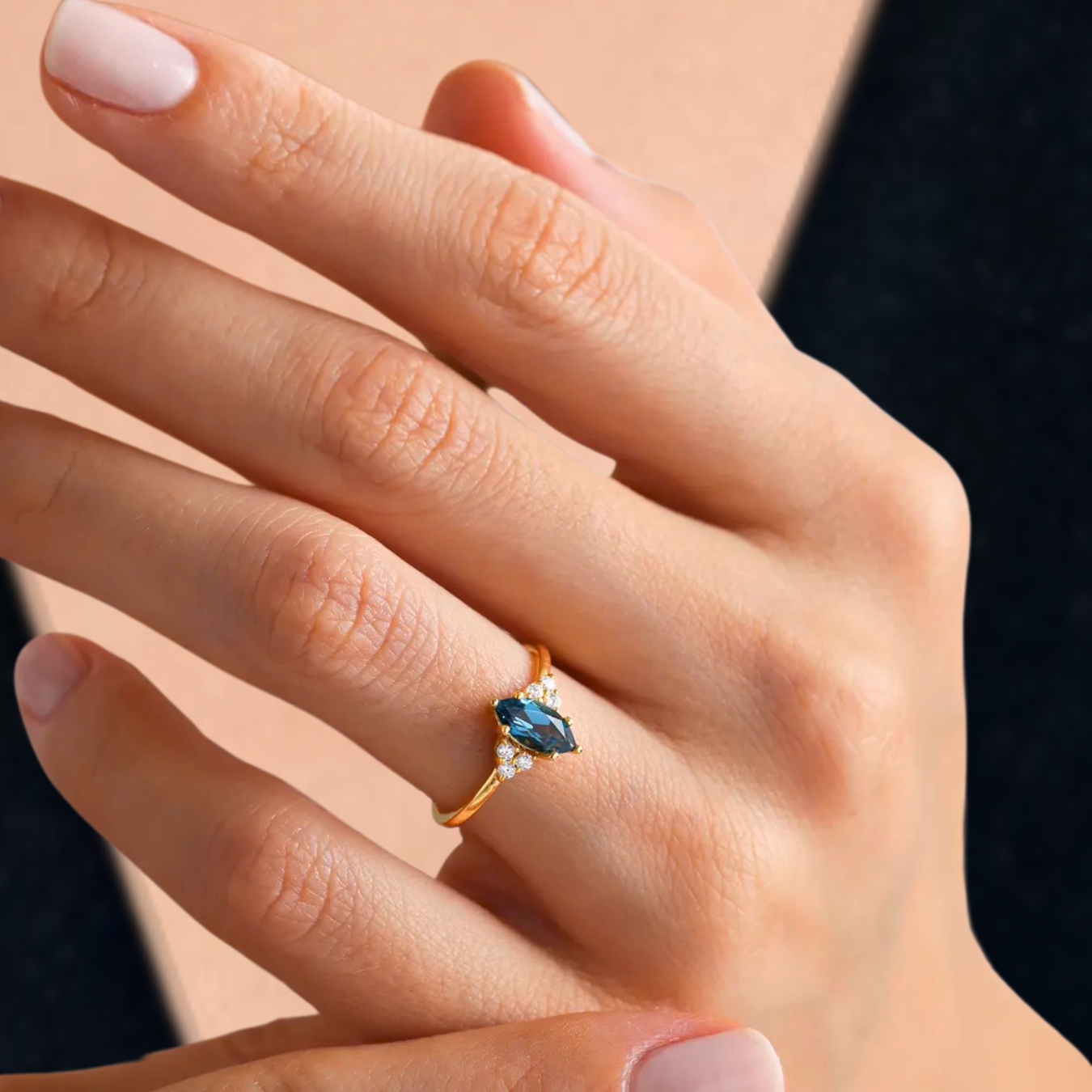 14K Anniversary Bridal Ring ,0.58 Ct Marquise cut London blue Topaz Engagement ring