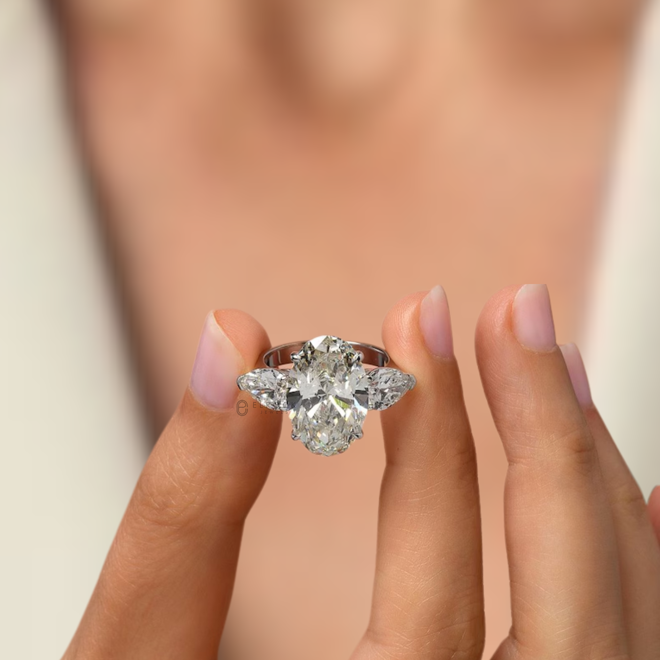 14K ,Oval Cut 12 Carat Three Stone Engagement Ring