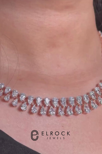 14K Gold Pear Shape Diamond Necklace with Diamond Necklace