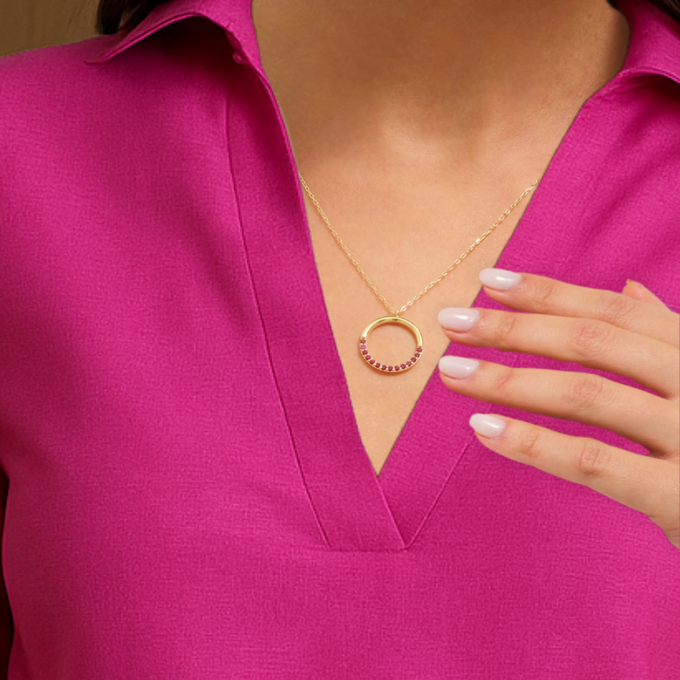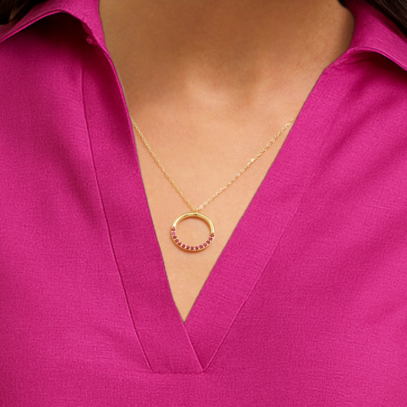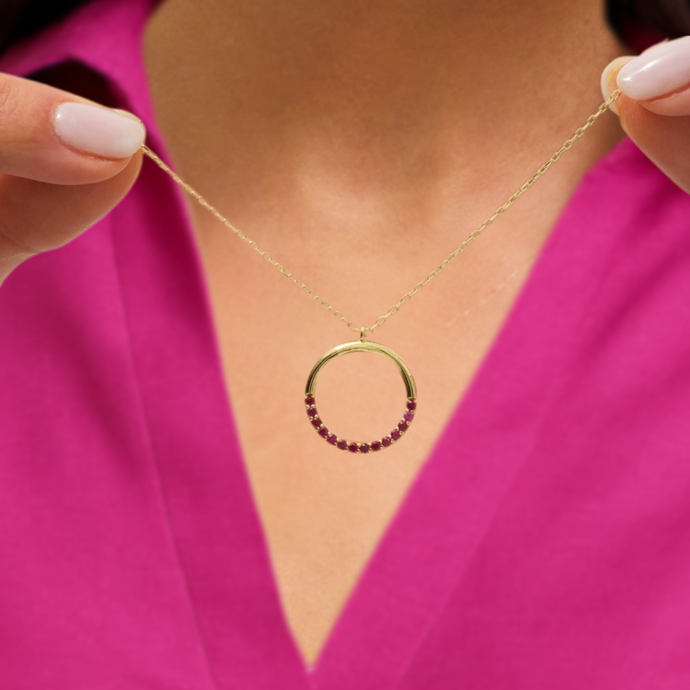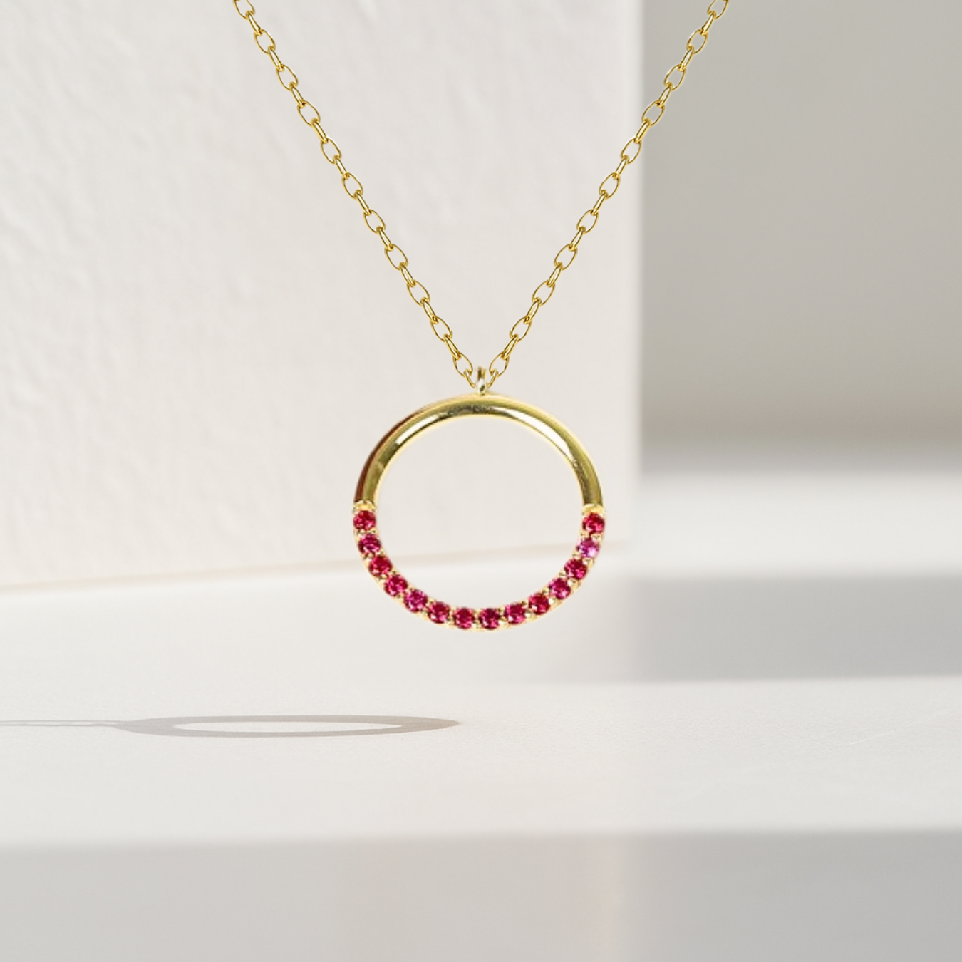 14K Solid Gold Red Ruby Circular Round Shape Charm Pendant
