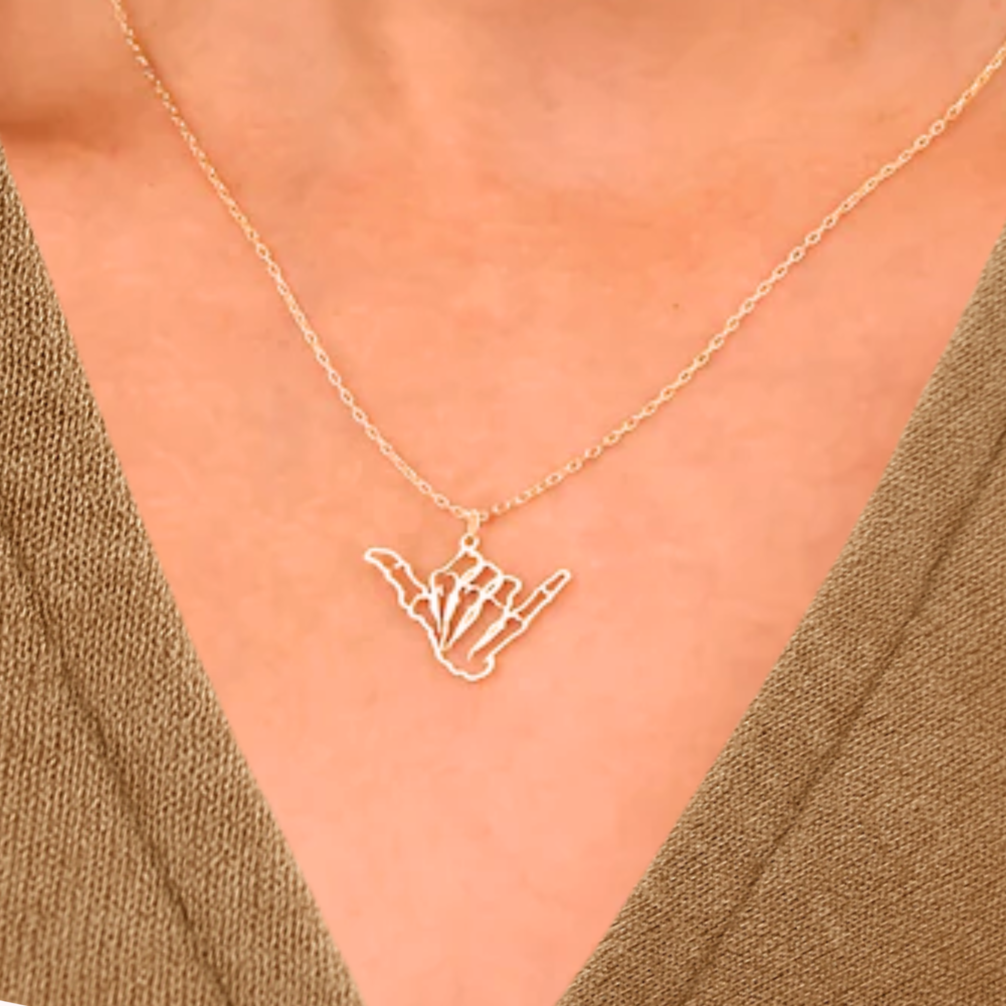 14K Gold Skeleton Necklace, Hand Signs, Hand Pendant
