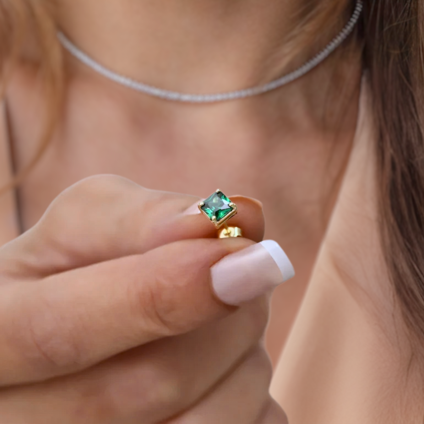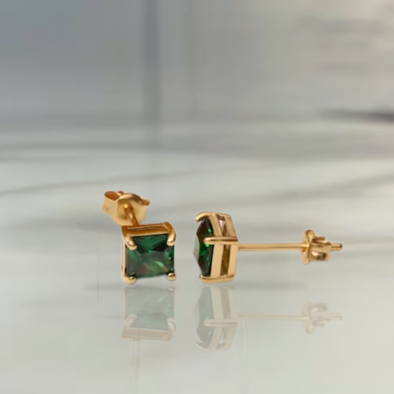 14K Square Emerald Stud Earrings 14K Solid Gold, May Birthstone Earrings